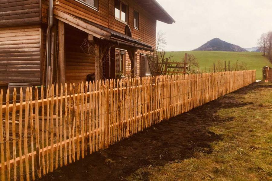 Naturbelassener Stakketen-Zaun aus heimischer Lärche
